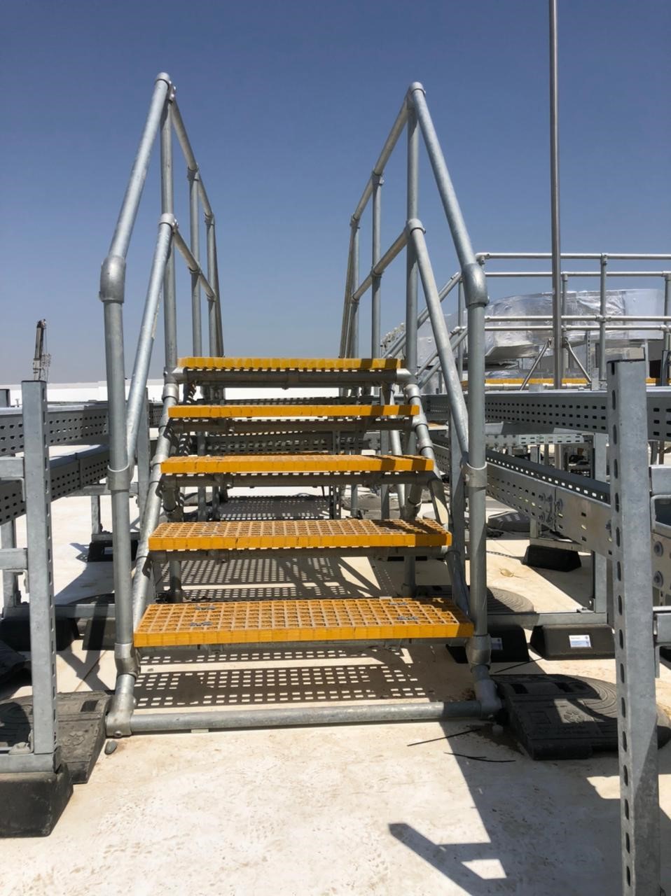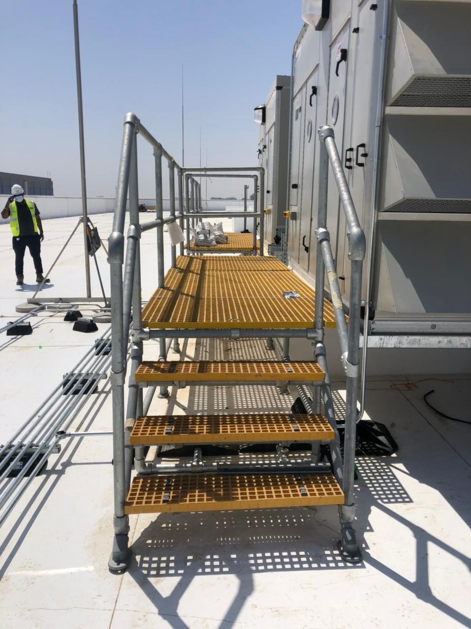 Outre les équipements de chauffage, de ventilation et de climatisation, les toits des centres de données peuvent être associés à des risques de trébuchement, en raison de la présence de câbles, de conduits, de gaines et de puits de lumière. Les passerelles de toit Kee Step constituent des moyens simples mais efficaces de franchir un obstacle en toute sécurité ou d’accéder à un autre niveau de toit.